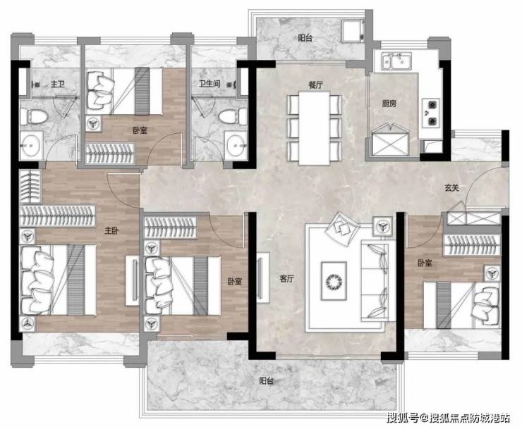 项目整体规划上采用点状式布局,保证每栋无遮挡,视野开阔,高层住宅采取塔式设计,小高层住宅采取板式设计,特有的匠心设计使得大部分的户型可以达到南北对流;东南侧集中规划小高层,南向望一线湾景。