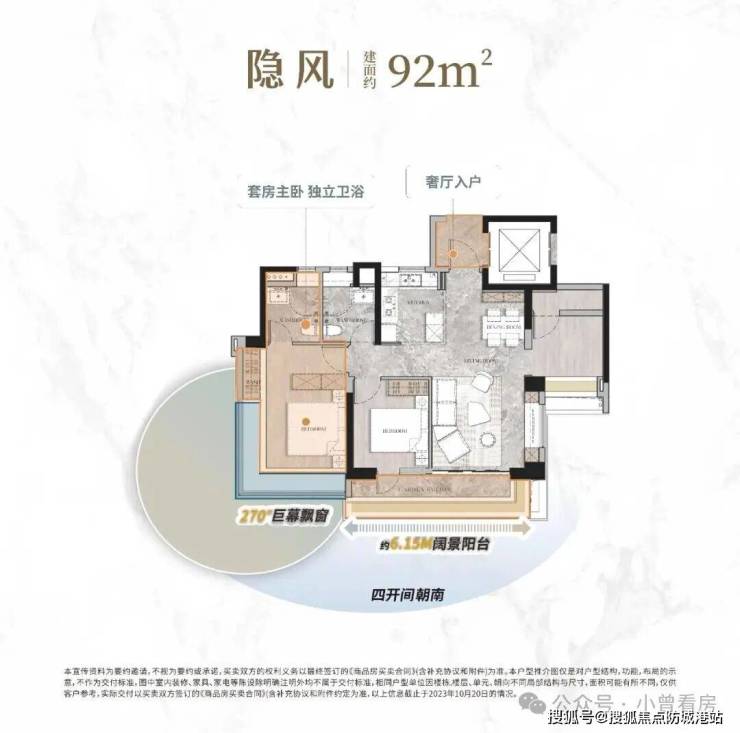 约92平方米 三房两厅两卫:此户型为经典“小面积,多功能”代表。四开间朝南,约6.15米阔景阳台连接客厅与次卧,采光面极佳。主卧配备270度转角飘窗,视野开阔。U型厨房设计,动线合理。该户型总价可控,是精英人士首套上车或子女为父母购置养老房的优质选择。