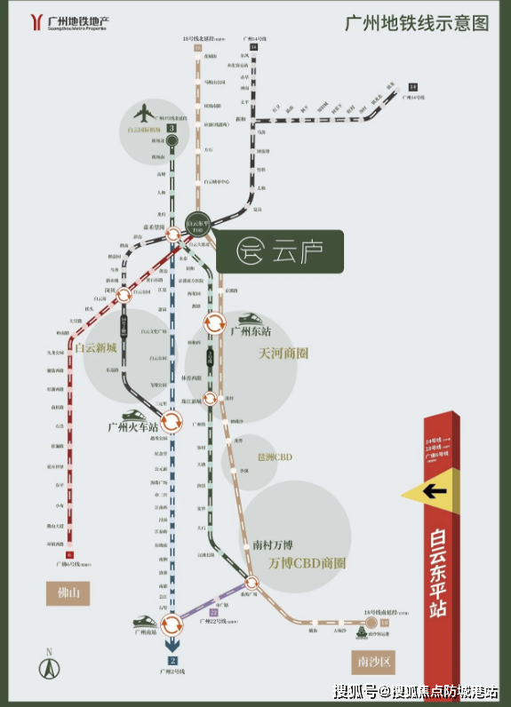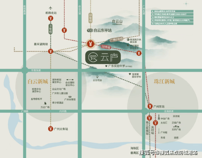 作为广州地铁开发的项目,云庐最核心的交通优势,就是紧邻白云东平站——该站点是广州地铁14号线(已开通)、广州地铁18号线北延段(在建中)、佛山6号线(规划中)的三轨道换乘站,同时也是公交总站上盖,形成“三轨道+公交”的立体交通网络,通达性极强,这也是项目区别于其他山居豪宅的核心亮点之一。