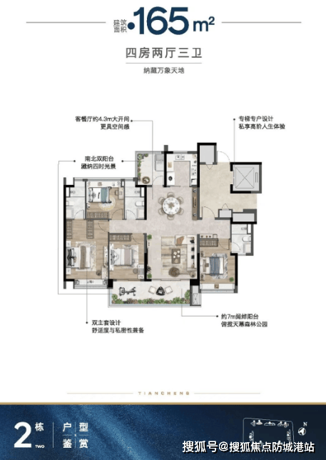 振业天成采用围合式布局,共有10栋住宅楼,建筑密度仅为19.5%,容积率低至2.0,营造出宽敞舒适的居住环境。主推户型包括104-168平方米的全四房设计,两梯两户或两梯三户的设计提高了隐私性和居住舒适度。其中7号楼为人才房,其他楼栋均已对外销售。每栋楼间距约为200米,保证了良好的采光和景观视野。