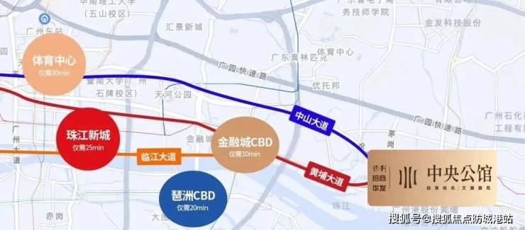 2大城市主干道(黄埔大道、中山大道)横穿珠江新城、金融城