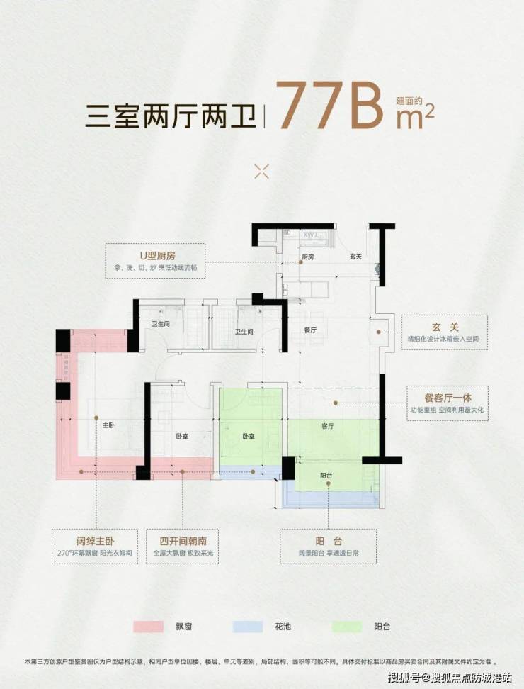 建面约77-135㎡三四房,四面宽南向,三房(最高)享约5米客厅,新规产品约127-137%高使用率,(但实际看了,感觉并没有宣传的那么高使用率)同面积不同户型,贴心打造多种人居空间。