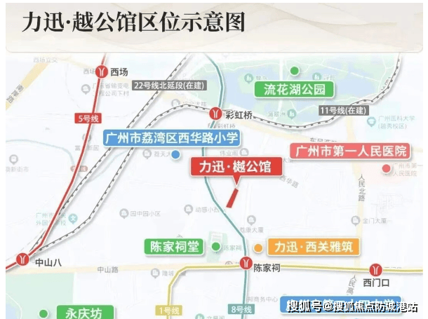 力迅·樾公馆堪称“双地铁上盖级”配置——步行约6分钟即可抵达陈家祠站(1号线+8号线)与彩虹桥站(8/11/13/22号线四线交汇)。尤其彩虹桥站作为广州地铁网络中的超级换乘枢纽,11号线为环线,串联天河、海珠、白云、荔湾四大核心区;13号线二期预计2026年通车后,将直达珠江新城,通勤效率大幅提升。这意味着,从项目出发,无论去琶洲、金融城还是天河北,基本实现“一次换乘全覆盖”。此外,康王路、中山七路、东风西路等主干道环绕,自驾出行同样高效。在广佛同城加速推进的背景下,项目距佛山南海仅15分钟车程,区域辐射力持续增强。对于依赖公共交通的都市精英或跨区改善家庭,这样的交通能级,已是老城区天花板级别。