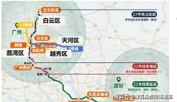 此外,22号线北延段(预计2026年年底通车)将进一步升级交通优势,8站直达白鹅潭,途经广州火车站、彩虹桥等重要交通枢纽,可换乘1、2、5、8等多条地铁线路,实现贯穿全市的立体交通网络,无论是日常通勤还是跨区出行都极为便捷。