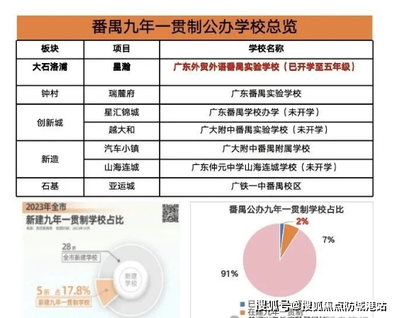 从距离来看,学校与小区各组团步行距离均在5分钟内,无需长时间接送,既节省家长时间,也保障孩子上下学安全。当前广州多区发布学位预警,而番禺区公办九年一贯制学校占比仅约7.25%,2023年全市新建九年一贯制学校中番禺西部仅2所,稀缺教育资源让项目更具竞争力,为孩子成长保驾护航。