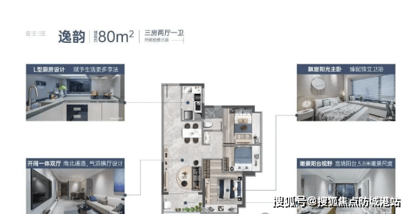 建面约80㎡三房一卫:紧凑高效,适合年轻家庭或首置刚需;