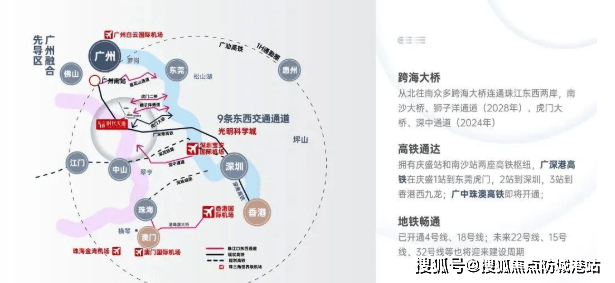 更令人瞩目的是其高铁优势:1站即达庆盛高铁枢纽,搭乘广深港高铁,30分钟直抵香港西九龙,2站可达深圳北站;未来广中珠澳高铁开通后,将进一步强化与中山、珠海、澳门的联动。加上南沙大桥、深中通道(在建)、狮子洋通道(规划)等跨海动脉,真正实现“30分钟互达港澳,1小时通勤湾区全境”的高效出行网络。