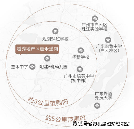 教育配套:项目配建12班公立幼儿园,西北侧规划54班九年一贯制学校(拟引进省实教育集团),3公里内聚集省实、华新、培英等5所省级名校,形成广州密度最高的名校教育圈,较普通区域名校密度高3倍。