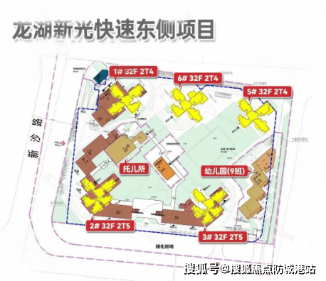 项目规划 5 栋 32 层高住宅楼,采用围合式布局。其中 1、5、6 栋两梯四户位于小区北侧,相对安静且舒适度高;2、3 栋两梯五户位于小区南侧临沙溪大道。2#、1# 工程进度较快为首推楼栋,主推 95、107、128、142㎡新规户型,据说使用率超过 130%。