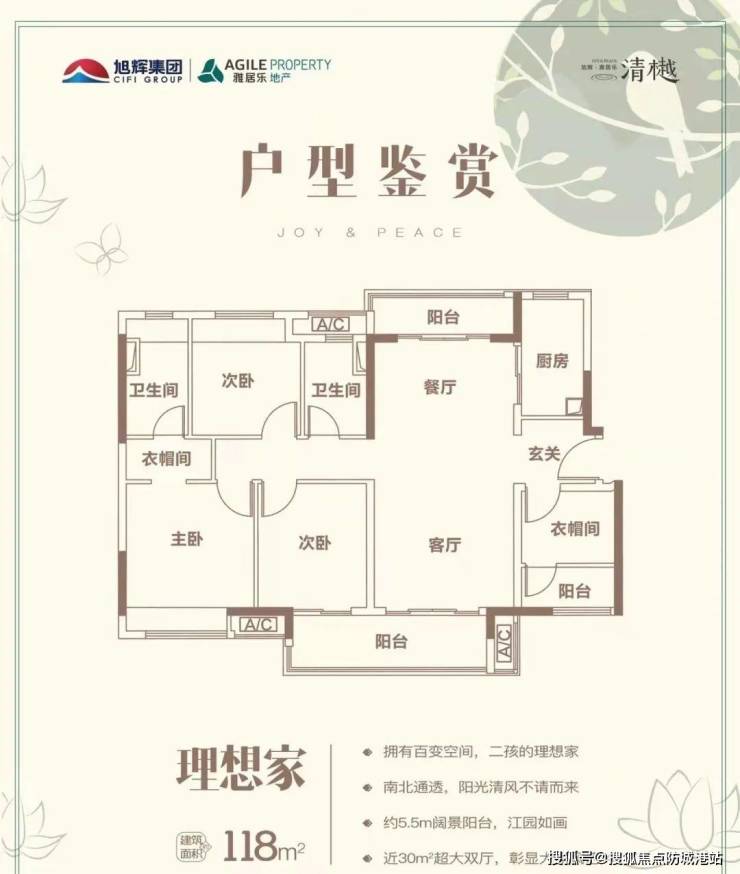 旭辉雅居乐清樾推出了四种主要户型,面积范围从88平方米到118平方米,每个户型都采用了创新点状式Y字型布局,保证每户都有良好的朝向和视野,同时提升了室内的采光和通风效果。