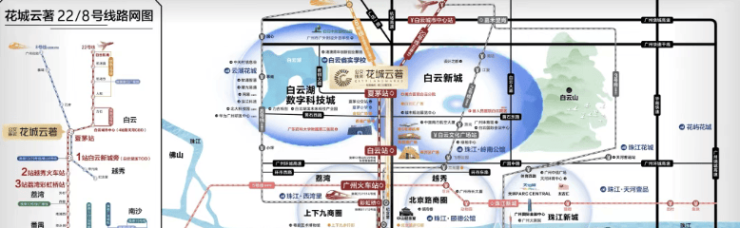 花城云著坐拥广州罕见的双地铁上盖优势:步行约1分钟即达在建地铁22号线与8号线北延段支线夏茅站。22号线作为时速160公里的南北大动脉,未来1站直达广州白云站,3站通达越秀老城,换乘18号线5站即抵珠江新城冼村站;8号线则串联白云湖、广州北站、棠溪TOD等重点片区。自驾出行亦便捷,通过机场路、华南快速、机场高速,30分钟覆盖白云新城、荔湾、越秀及白云机场。