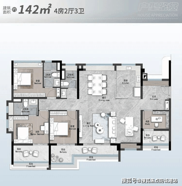 6.3 改善主力:142㎡四房两厅三卫,高端舒适适配改善家庭