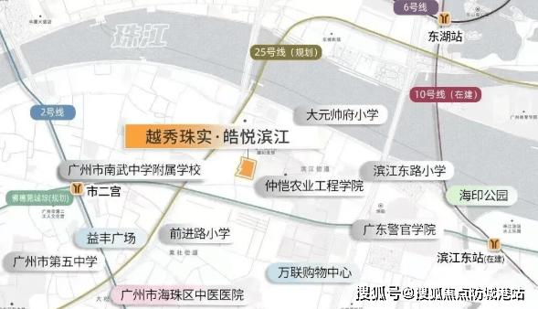 教育方面,虽然当前周边学校如大元帅府小学、前进路小学、南武中学附属小学等尚未跻身顶尖行列,但值得期待的是,海珠区已明确2025年将实现公办学校100%纳入教育集团化管理。参考近期东晓地块出让后迅速引入海珠外国语实验中学附属小学的先例,皓悦滨江未来亦有机会“榜上有名”,为业主子女提供更优质的教育资源。初中阶段,项目大概率划入第一组别,升学竞争力有保障。