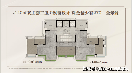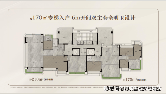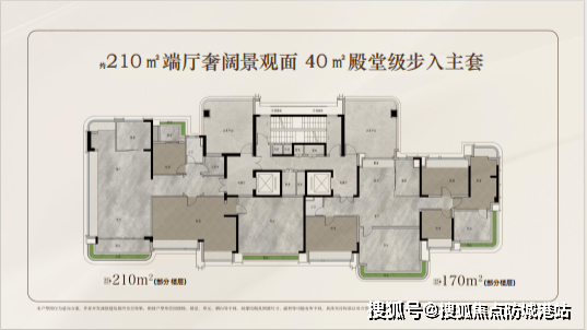210㎡环幕江景户型:双套房布局,270°江景视野,阳台面积25㎡,配备独立电梯厅。