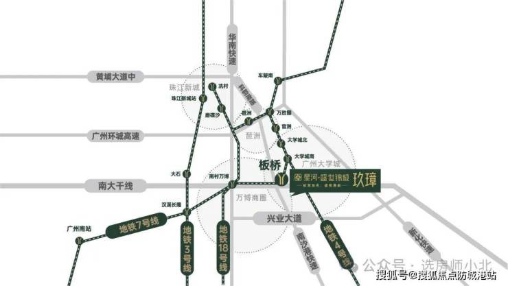 项目距离地铁7号线板桥站仅600米左右,今年底7号线二期开通,从项目去往万博、南站、大学城、科学城等地都非常方便,无需换乘,而且项目乘坐地铁至万博,可换乘18号线,可直达珠江新城,开车线路,项目临近南大干线,可快速转新化快速,南大干线且没有红绿灯