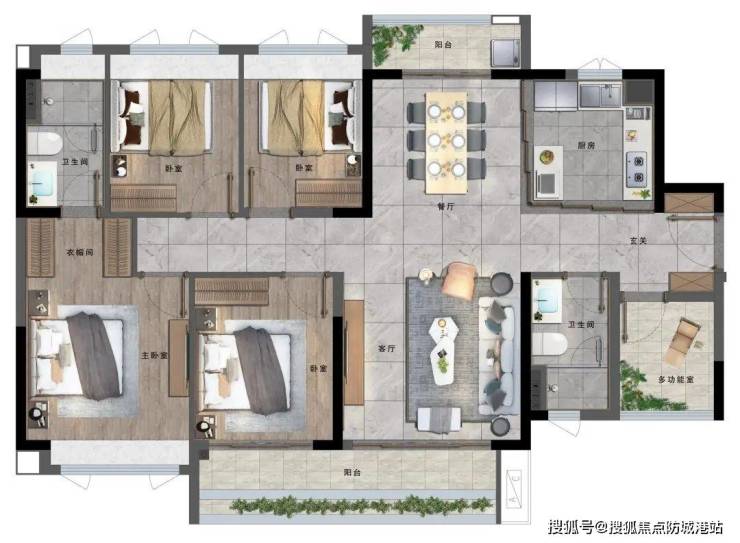 8、C户型建面约129㎡,是4房2厅2卫的户型,为大家庭提供了宽敞舒适的居住空间。四房的设计可以满足家庭成员较多的居住需求,保证每个人都有相对独立的空间。同时,客厅、餐厅等公共区域宽敞明亮,有利于家庭成员之间的互动交流,提升家庭生活的幸福感。