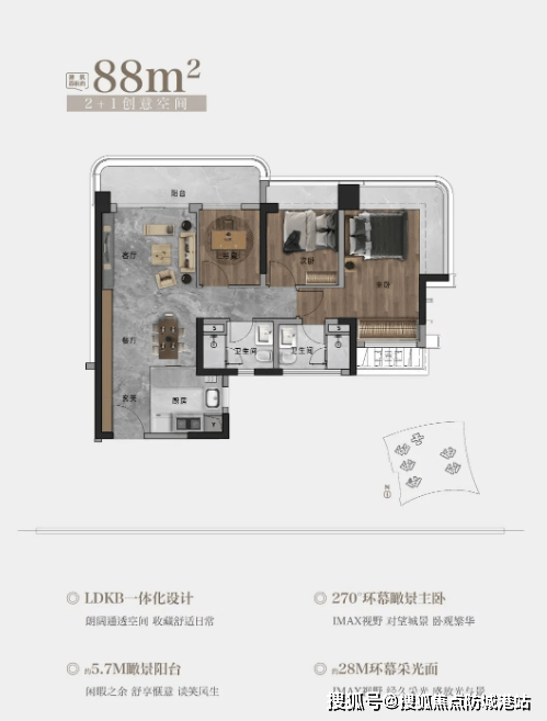 88平方米两房两厅一卫:适合年轻家庭或单身人士居住,空间紧凑实用。
