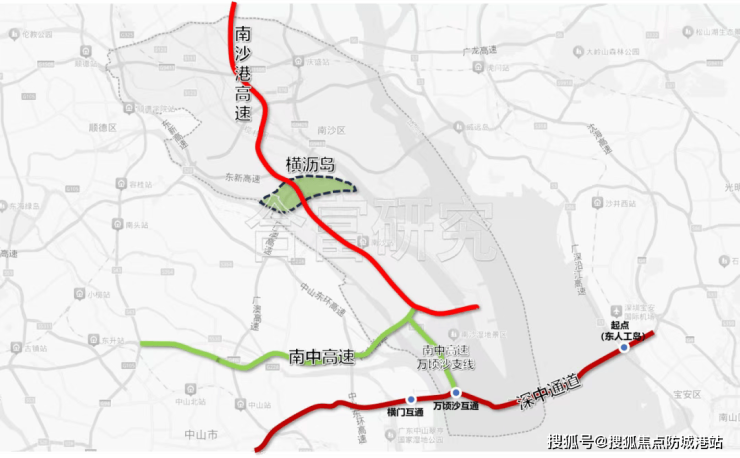 项目距地铁18号线横沥站仅约400米,步行5分钟内可达,是横沥岛少有的真正地铁上盖级住宅。18号线已开通运营,30分钟内直达珠江新城、琶洲、万博等核心商务区,极大提升通勤效率。更值得关注的是,横沥站未来将成为18号线、15号线与NS2线三线换乘枢纽,而横沥东站则汇聚广中珠澳高铁、NS1线与NS2线,形成湾区级交通节点。随着深中通道全线贯通、南中高速万顷沙支线年内通车,从横沥岛出发1小时内可抵达深圳前海。多重轨道与高速路网叠加,让业主既能享受岛尖静谧,又不失湾区核心连接力。