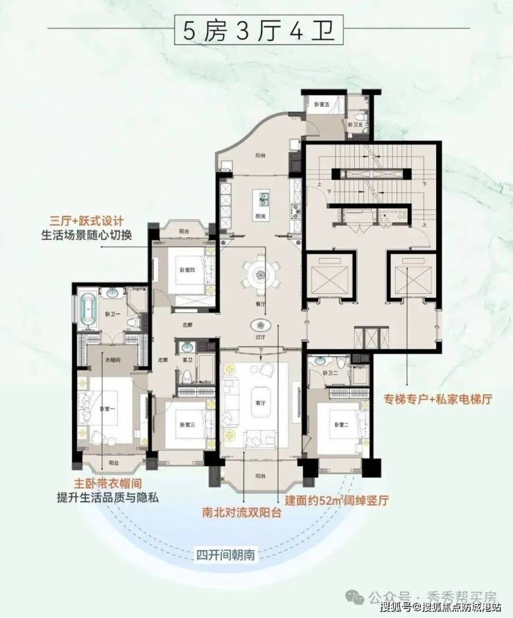 2栋:238㎡五房三厅四卫、265㎡五房三厅五卫,专为多代同堂的大家庭定制。