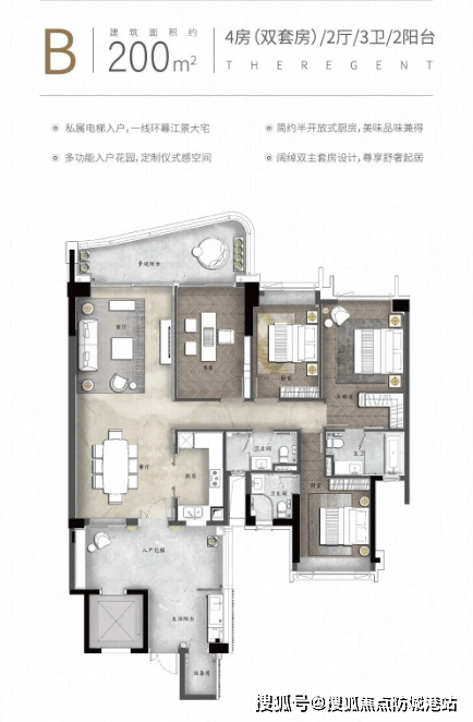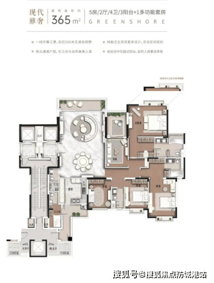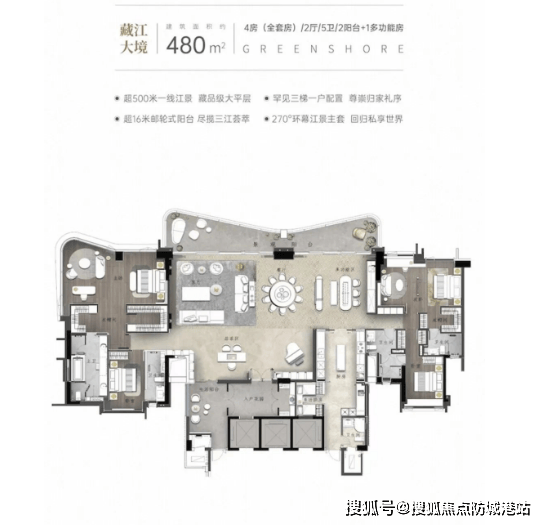 户型设计:140-437㎡奢阔户型,江景 + 高实用率