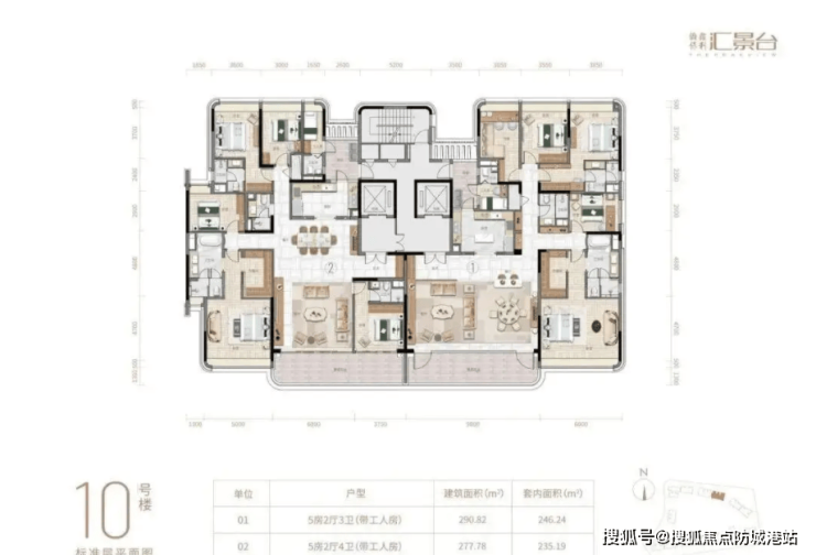 9栋和10栋的户型布局相近,均为12层2梯2户设计,分别涵盖277-290㎡五房三卫,定位为高端改善型户型,适合多代同堂家庭或人口较多的大家庭居住,户型设计兼顾了家庭成员的独立空间与互动需求,既能让每个家庭成员拥有自己的私人空间,又能促进家人之间的交流与互动。