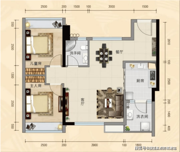 经典刚需户型,方正通透,动静分区明确;客餐厅一体化设计,连接观景飘窗,延伸空间感;主卧带 270° 大飘窗,直面珠江江景;次卧空间充足,可作儿童房或书房;明厨明卫,采光通风俱佳,适合单身贵族、小两口或刚需家庭,总价 230 万起,主城安家首选。