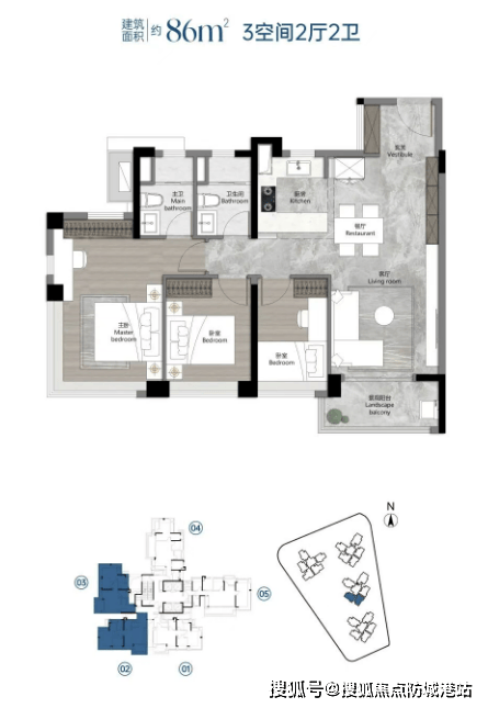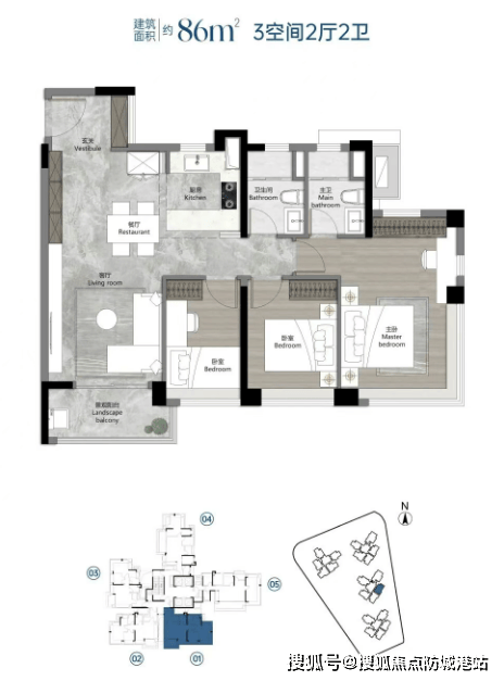 新规高使用率户型,88㎡实现三房两卫+四开间朝南