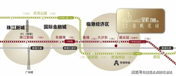 越秀滨江·星航TOD位于黄埔临港经济区(南片),紧邻黄金珠江航道及南海神庙风景区,文化底蕴深厚。项目接驳黄埔大道,地铁5号线庙头站(在建中)上盖,近地铁13号线南海神庙站,双轨交汇,形成多维立体交通枢纽。此外,项目周边还覆盖了BRT快速公交线路,方便快捷地连接天河体育中心、奥体等核心区域,真正实现了畅达全城各大CBD的目标。