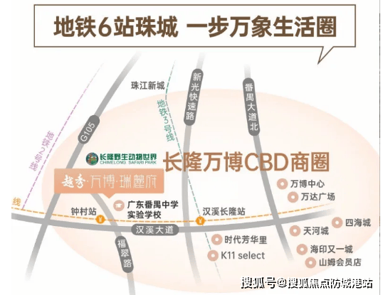 越秀·万博·瑞麓府地处番禺核心板块,紧挨长隆动物世界西南侧,西侧靠近钟顺路,地理位置得天独厚,无缝衔接长隆万博CBD,坐享板块扩容带来的全方位利好。随着长隆万博CBD正式扩容,由原来的1.5平方公里扩大至7.2平方公里,规模赶超珠江新城,形成“北天河南番禺”双格局,项目作为板块内稀缺低密住宅,区位价值持续凸显。