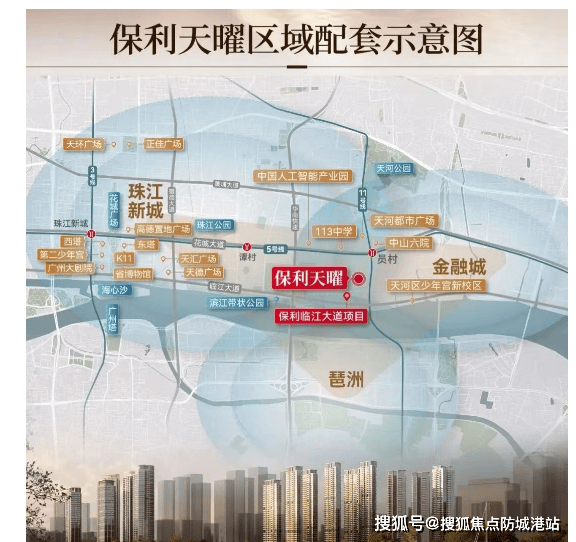 保利天曜地处广州核心金融区,紧邻华南快速干线、黄埔大道中、临江大道等主要交通线路,出行十分便利。项目距离地铁5号线与11号线的交汇站——员村站仅约900米,步行大约需要15分钟。未来随着11号线的开通,将直达琶洲和天河CBD,极大提升了交通便捷性。此外,周边配套设施齐全,包括K11、天德广场等高端商业设施,以及中山大学附属第六医院等医疗资源,生活氛围浓厚,具有较高的性价比。