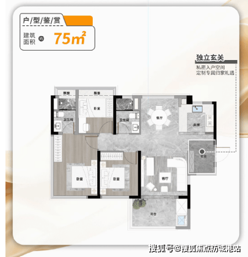 户型设计:75-108㎡三至四房,120% 超使用率