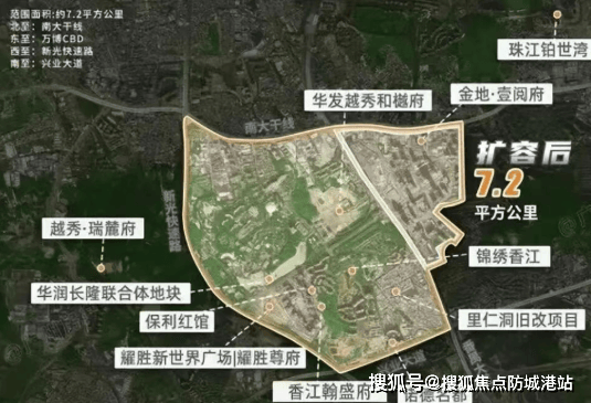 2023年4月,番禺区正式官宣:长隆-万博商务区完成历史性扩容,从原有的约1.5平方公里扩展至约7.2平方公里,一举超越珠江新城(约6.2平方公里),以“广州南CBD”之名面向全球招商推介。这一战略升级,标志着该区域正式迈入“文商旅居产”五位一体的综合型世界级商圈新纪元。