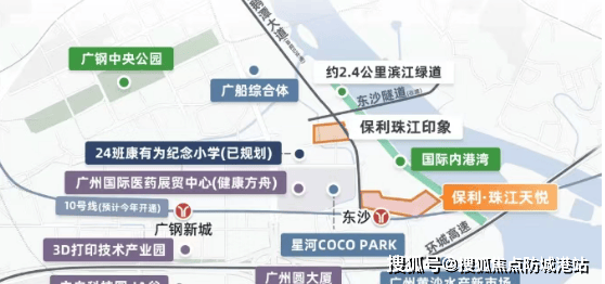 保利珠江天悦拥有全维交通网络,地铁与水上交通结合畅达大湾区。项目南侧距 10 号线东沙地铁站约 400 米,步行 4-5 分钟可达,预计年底开通,开通后 4 站中大、6 站滨江东,零换乘直达珠江新城。此外,规划有水上巴士及港湾码头,未来可乘坐水上巴士直达珠江新城,欣赏沿途风景。交通方式多样,便捷通达大湾区各地。
