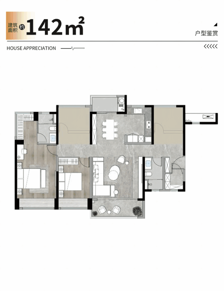 项目当前主推东区组团 140-142㎡四房(今年全广州千万级 140㎡四房销冠),同时涵盖 160-200㎡大平层,全系户型以 “高舒适度 + 生态景观” 为核心设计理念,适配二孩家庭至三代同堂的高端改善需求。