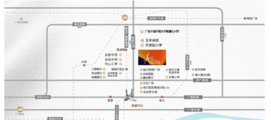 公共交通方面,项目步行约900米即达在建中的新白广城轨永宁南站,通车后1站可抵达新塘TOD,3站直达天河北,30分钟内即可畅达珠江新城,极大缩短了与核心城区的通勤时间。此外,区域内还规划有地铁23号线永宁南站,未来地铁开通后,交通便利性将进一步提升。目前周边有多条公交线路环绕,可满足日常短途出行需求。
