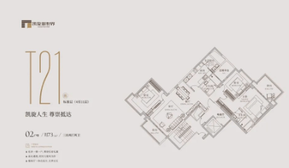 2. 建面约173-180㎡三房(广粤尊府T21栋):该户型为高端改善之选,梯户比为2梯2户,专梯入户,私密性与尊崇感拉满,得房率高,空间宽敞舒适,正南北朝向,通风采光效果极佳,适配高端改善人群、三口之家或三代同堂家庭居住。该户型采用三房两厅两卫设计,空间布局合理,兼顾实用性与尊崇感,客厅与南向大阳台一体化设计,阳台视野开阔,可欣赏社区园林景观或珠江远景,提升居住舒适度与景观体验;主卧配备独立卫生间、衣帽间与观景飘窗,空间宽敞舒适,彰显居住尊崇感,次卧空间充足,可满足家人的居住需求;厨房采用U型设计,操作空间充足,搭配餐厅,方便日常烹饪与会客,贴合高端改善家庭的居住需求;全屋收纳空间充足,配置玄关柜、阳台储物柜、衣帽间等,可满足高端改善家庭的储物需求;装修标准与大户型保持一致,配备一线品牌家电、高端卫浴与智能化配置,提升居住舒适度与品质感,适合追求居住品质、注重私密性与尊崇感的高端改善人群。