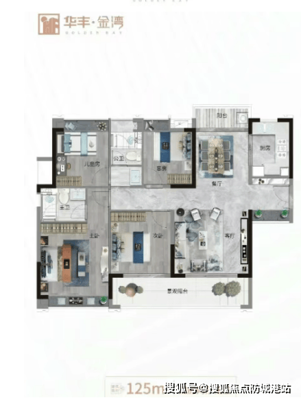 华丰金湾的户型以全南向设计为主,注重实用性和观景体验。例如: