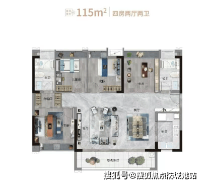115-143平方米户型:南北通透,端位产品拥有6.7-7.2米阔景阳台。