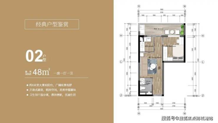 建面约48㎡的一房一厅一卫:适合单身人士或小家庭。