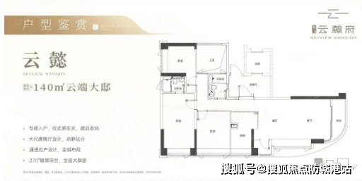 140㎡南向4房,六开间超南,超17米南向面宽,四面采光单边户。