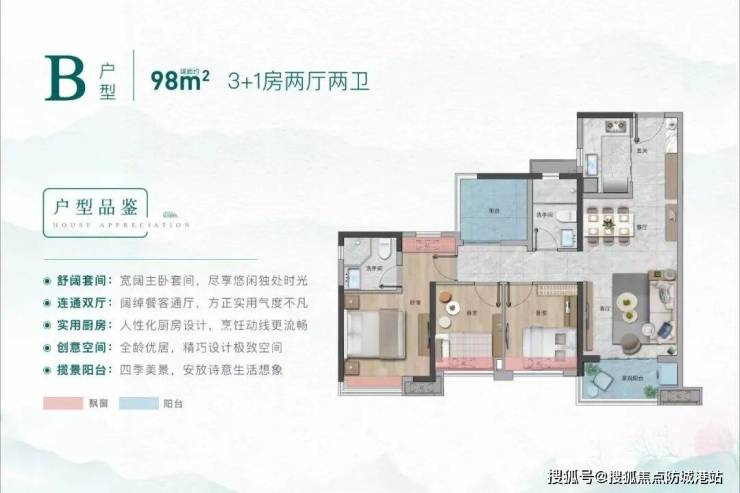 而建面约98㎡的3+1户型(B)则非常适合多孩家庭,四开间朝南,灵活空间未来则可以改造成儿童房或书房,为家庭增添更多生活方式。
