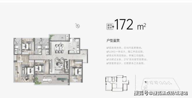 建面约 227㎡户型堪称奢居典范,在尺度、空间及视野感上都出类拔萃。单梯到户,业主独享约 10㎡私家电梯厅,隐私空间与身份体验感十足。室内大金 VRV 中央空调,让居住者时刻享受舒适环境。84㎡LDKG 一体化布局,空间阔绰通透,家人互动更为便捷。高达 66% 的窗墙比,全面提升室内采光与通风性能。L 型阳台景观带来 270° 环幕江景,将绮丽江景引入客厅,令人仿佛置身于江景画卷之中。中西厨双模式设计,全德系品牌配置,智能水槽、净水设备、垃圾处理器以及博世的高端厨电八件套,尽显奢华品质。约 35㎡尺度的五星级酒店套房主卧,超大采光面与空间感,让业主在家就能享受五星级酒店般的生活。此外,作为阳台新规下的革新之作,超高赠送的飘窗及阳台面积,实现户户空中花园,户型使用率高达约 100%,真正做到了空间的极致利用。