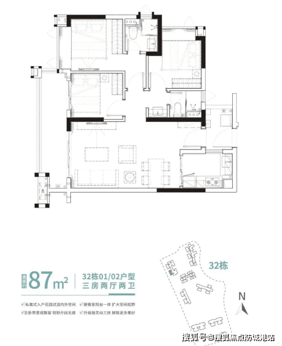 此次加推的新品为观灏组团的悦景楼座,共32栋,提供三种户型选择:86平方米、96平方米和100平方米的三房单位。这些户型设计注重采光和通风效果,多面采景,三面望水,旨在最大化利用每一寸空间,打造出舒适、人性化的居住环境。无论是首次置业者还是改善型买家,都能在这里找到适合自己的理想居所。