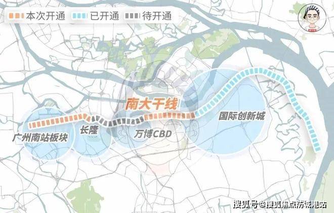 交通系统方面,项目依托多层级立体交通网络。南大干道作为城市南部重要快速交通走廊,规划为双向6-8车道,不设红绿灯快速通行体系,设计时速可达80km/h以上,能够直接连接新化快速路系统,从而实现向广州中心城区的快速通达。以实际通勤逻辑测算,从项目出发,约10分钟可抵达国际创新城片区,约15分钟可进入万博CBD商业圈,约25分钟可到达广州南站综合交通枢纽。