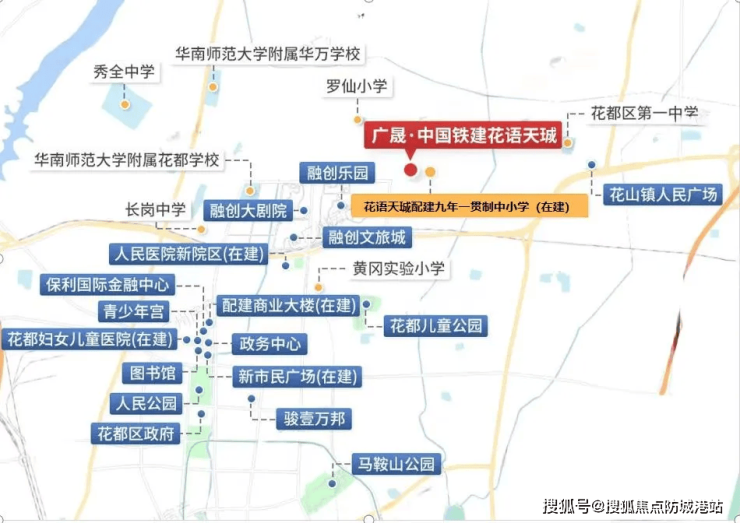 花语天珹教育配套十分出色,自带18班幼儿园,并配建了九年一贯制公立中小学——广铁一中花都铁英学校,直线距离项目约500米,预计2025年9月开学。广铁一中作为首批省一级学校,重本率连年突破9%,本科率100%,确保办学质量。此外,片区内还有广州市第六中学花都校区,为54班完全中学,进一步丰富教育资源。