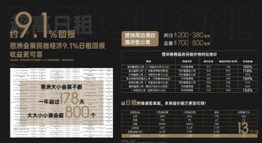 会展经济直接带动区域酒店、公寓租赁市场繁荣。数据显示,琶洲周边公寓闲日租价约 200-380 元 / 天,会展期间租价可达 700-800 元 / 天。以越秀琶洲 ONE57 35㎡双钥匙户型为例,会展期间按日均 700 元计算,单月会展租金收益可达 2.1 万元;闲日按日均 300 元计算,月租金收益约 9000 元,叠加分层出租的稳定收益,年租金收益最高可达 13 万元,租金回报率约 9.1%,远高于市场平均水平。