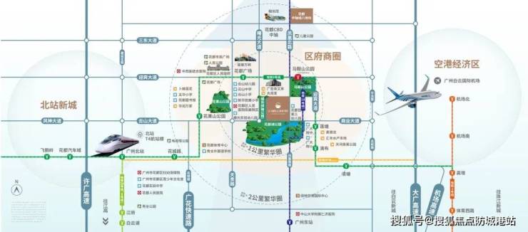 项目位于花都区府中轴线上,媲美广州的珠江新城。同时受空港经济区+广州北站“两大空铁联运”综合枢纽的双重辐射。