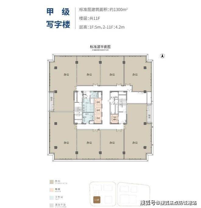 11 层甲级写字楼 1 - 1B:甲级写字楼空间,约 1030 - 2300m² 的面积段,为不同规模企业提供丰富选择。11 层的高度,既能保证良好的视野与采光,又便于企业在同一栋楼内形成集聚效应,促进企业间的交流与合作。
