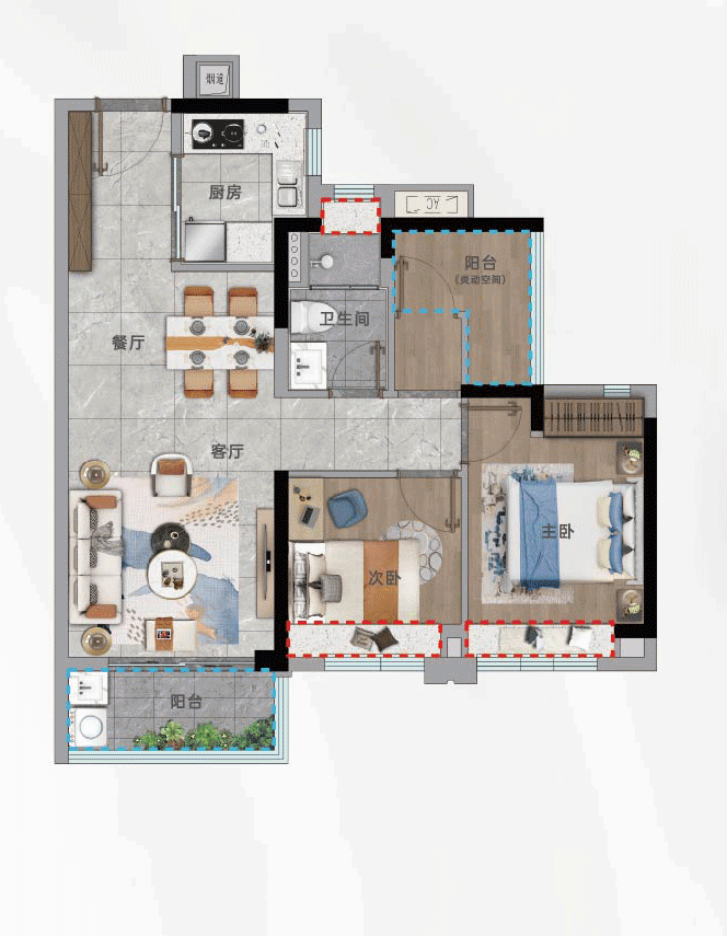 特点:U型厨房、卧室、灵动空间等功能体系齐全,实用性高,适合三口之家。