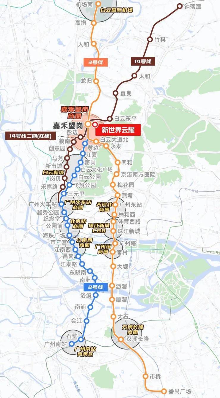 白云岭南新世界·新世界云耀位于广州白云新城核心板块,坐拥地铁2号线、3号线、14号线三轨交汇枢纽嘉禾望岗站,步行仅需8分钟。项目周边5公里内覆盖白云国际机场快线、华南快速干线,15分钟直达珠江新城CBD,30分钟通达全城。作为白云区重点规划的“产城融合示范区”,项目周边3公里内汇聚了白云新城总部经济带、广州设计之都、白云湖数字科技城三大产业集群,未来5年预计新增超20万高净值就业人群,区域价值持续攀升。